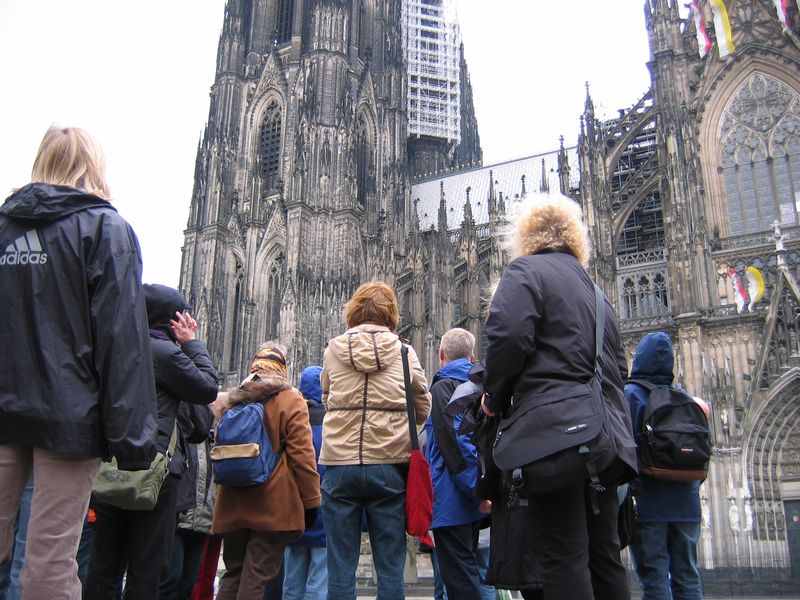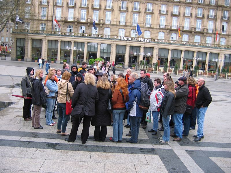 Die 2005er Chorfahrt führte ins nasse und kalte Köln. Wenig Attraktionen der Stadt wurden ausgelassen: Eine Stadtführung als „Kölsch“-Tour, der Heinzelmännchen-Brunnen, Tünne und Schäl und der Kölner Dom standen auf dem Programm. Abends am Samstag war ein bemerkenswertes Konzert in der St. Heribert Kirche vor 50 Zuschauern! Der Pabst war verstorben und der Kirchenraum war mit Trauerflor für das Reuiem geschmückt. Nur in einer hinteren Ecke durfte der Chor stehen und „ein gelungenes Konzert“ singen. Vor der Tür, in der vollen Altstadt fand der Abend einen „ausgiebigen“ ausklang.